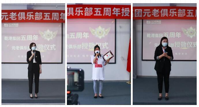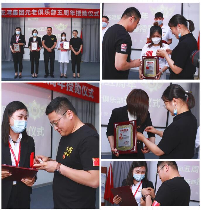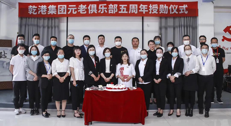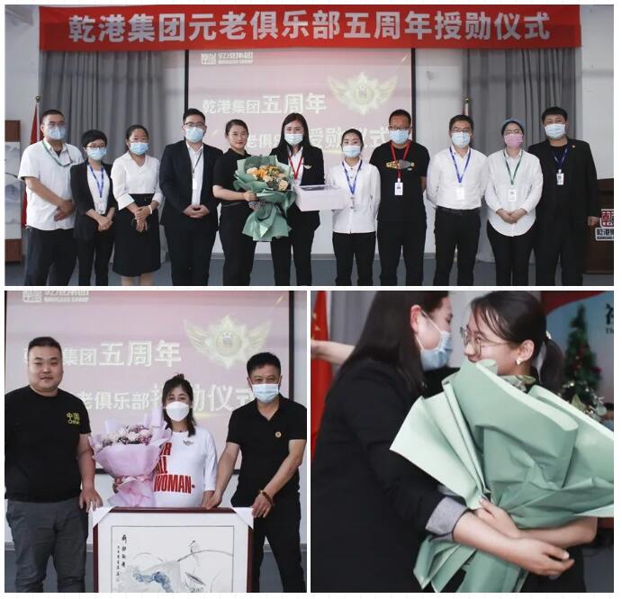 2020年5月28日,乾港集團(tuán)元老俱樂部五周年授勛儀式隆重召開,乾港集團(tuán)對(duì)3位工齡超過5年以上的老員工授予榮譽(yù)勛章,感謝元老們?cè)谇奂瘓F(tuán)發(fā)展中做出的貢獻(xiàn)。